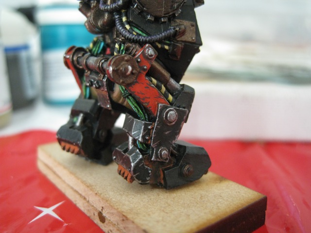 And some test weathering on the red and black - I started with these areas as they'd mostly be covered up by the arms, so it was less critical to be 100% exact.